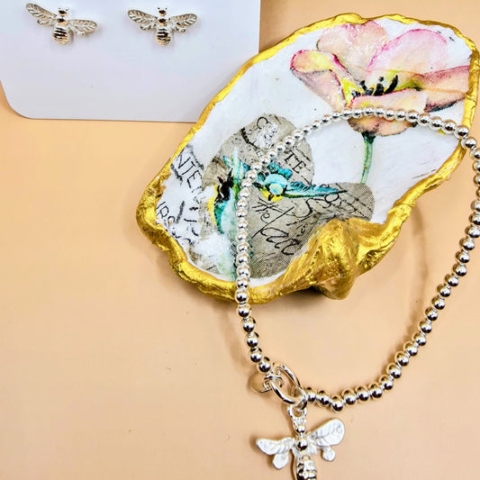 Beaded Delicate Bumble Bee Stretch Charm Bracelet Silver