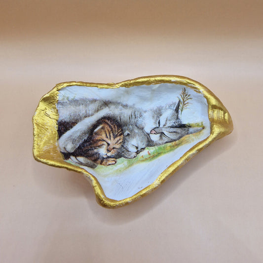 Sleeping Kittens Cats Oyster Shell Trinket Dish