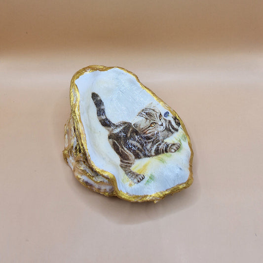 Tabby Cat Kitten Oyster Shell Trinket Dish