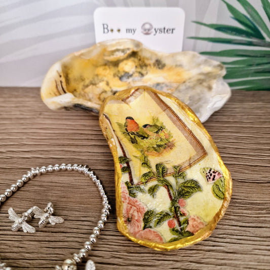 Vintage Floral Bird Rose Oyster Shell Trinket Dish