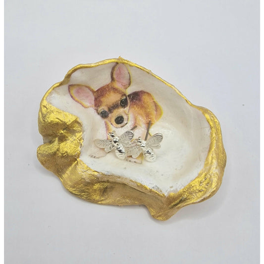 Chihuahua Brown Dog Oyster Shell Trinket Dish