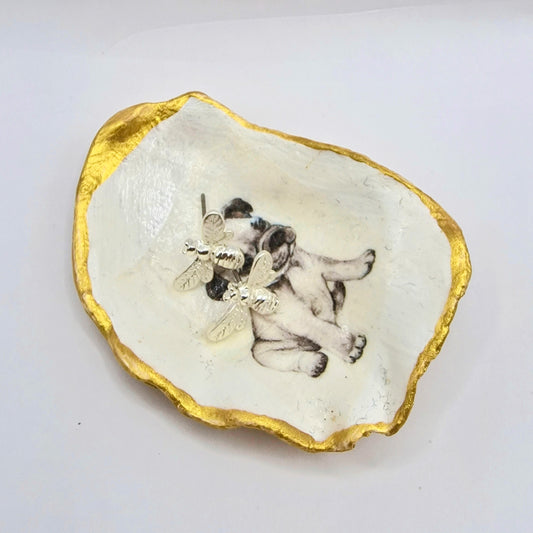 Boston Terrier Puppy Dog Small Oyster Shell Trinket Dish