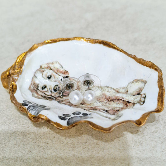 Golden Retriever Dog Oyster Shell Trinket Dish