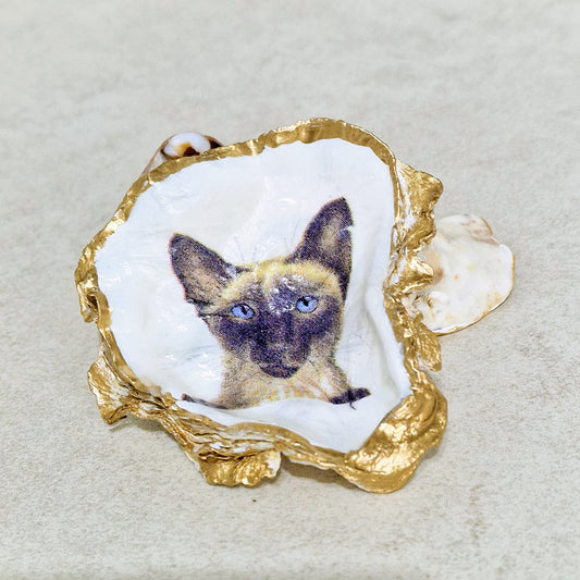 Siamese Cat Kitten Oyster Shell Trinket Dish