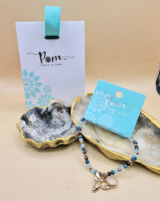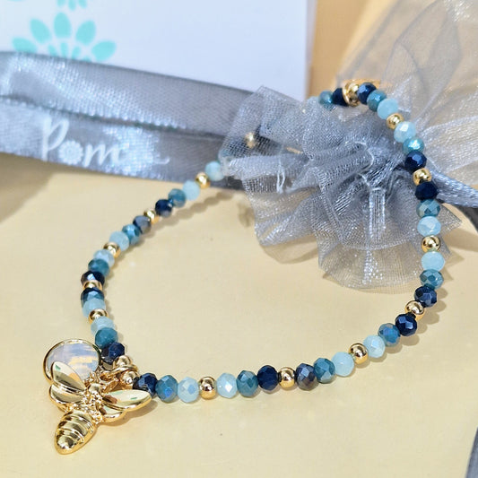 Denim Blue Crystal Beaded Stretch Bracelet Bee Charm by POM