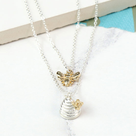 Delicate Layered Honey Bee with Beehive Necklace by POM