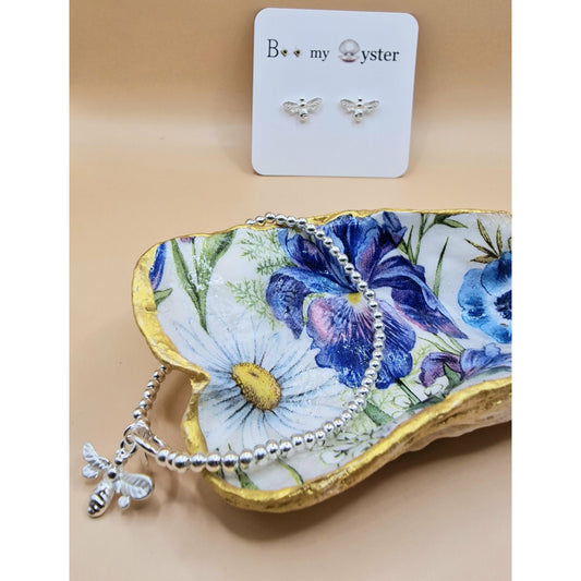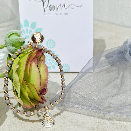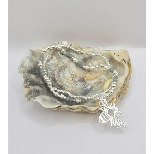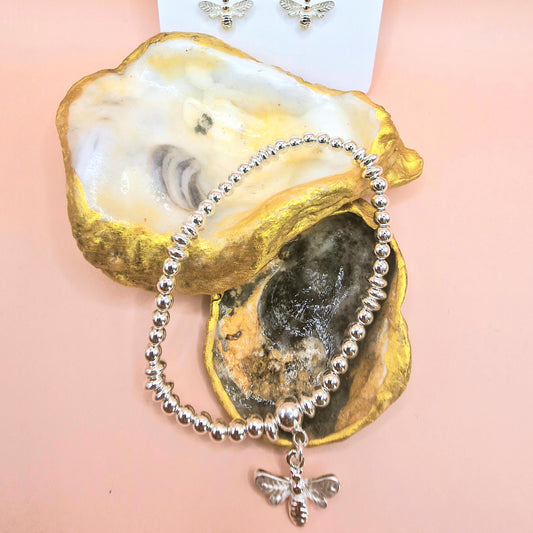 Beaded Delicate Bumble Bee Stretch Charm Bracelet Silver