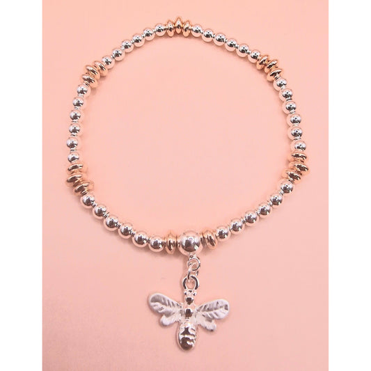 Bumble Bee Stretch Charm Bracelet Silver - Rose Gold Colour