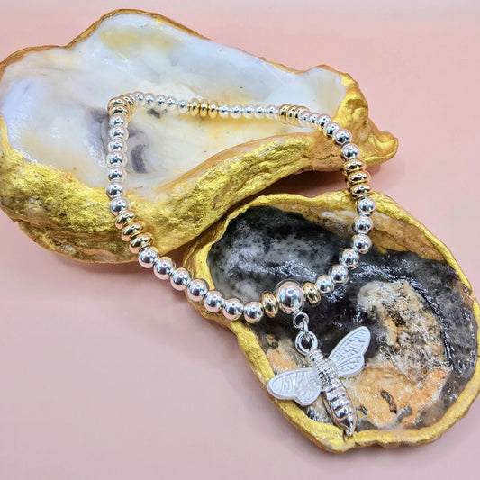 Bumble Bee Stretch Charm Bracelet Silver - Gold Colour
