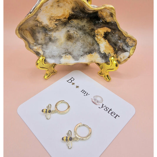 Pretty Bumble Bee Drop Hoop Earrings Pierced Gold Colour