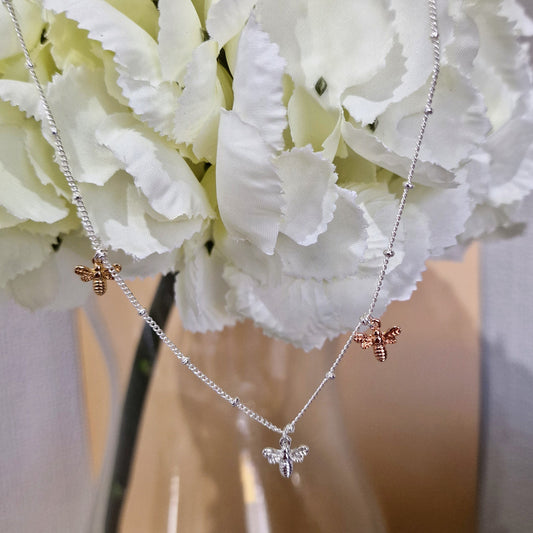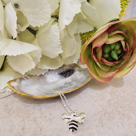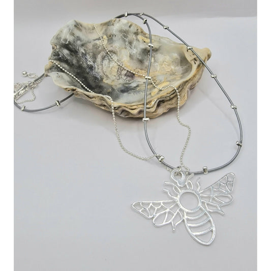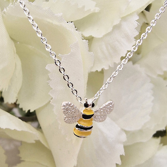 Bumble Bee Charm Necklace Silver Coloured Detailed