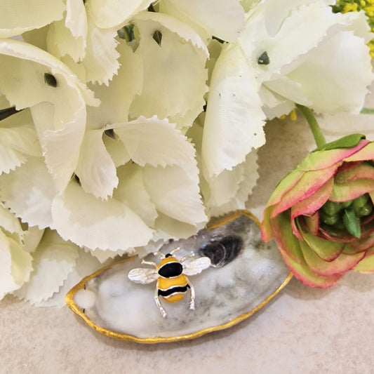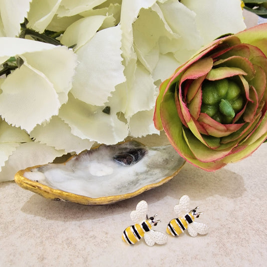 Bumble Bee Pierced Stud Earrings Silver Yellow Coloured