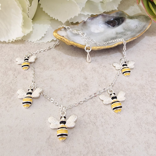Bumble Bee Chain Charm Bracelet Silver Colour