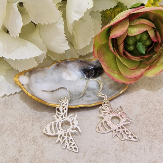 Silhouette Bumble Bee Drop Pierced Earrings Silver Plate