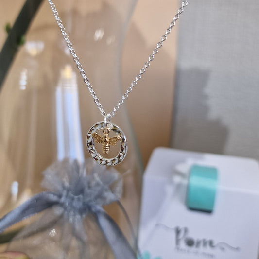 Silver Plated Disc with Gold Bumble Bee Necklace by POM
