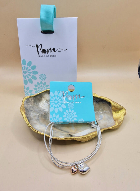 POM Three Strand Duo Heart Charm Bracelet Clip Fastening