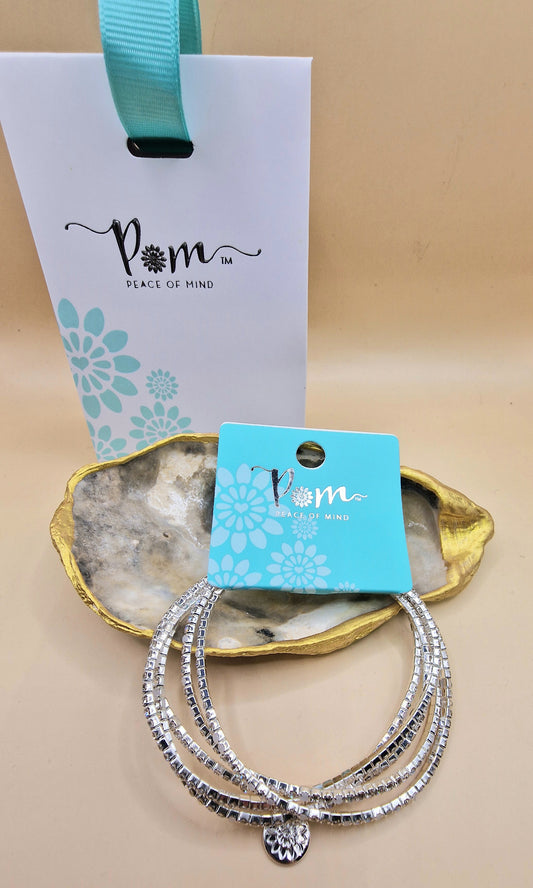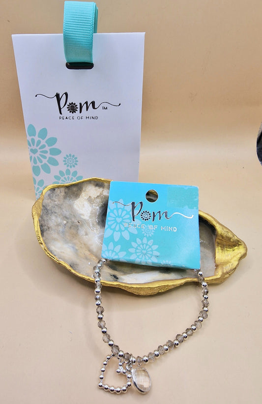 POM Grey Crystal Silver Heart Stretch Charm Bracelet