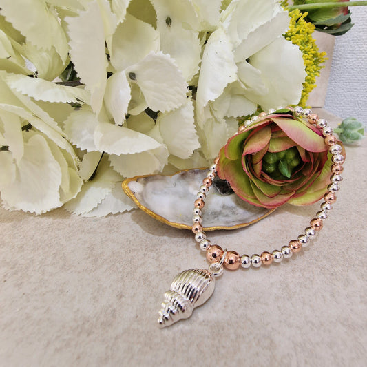 Beaded Shell Stretch Charm Bracelet Silver - Rose Gold Colour