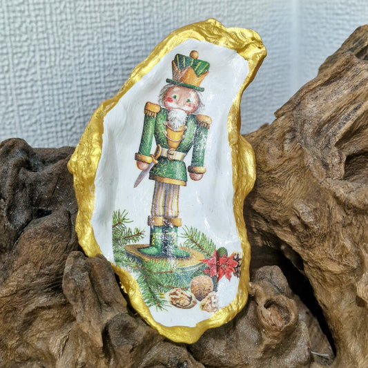 Christmas Ornaments Green Nutcracker Man Oyster Shell Trinket Dish