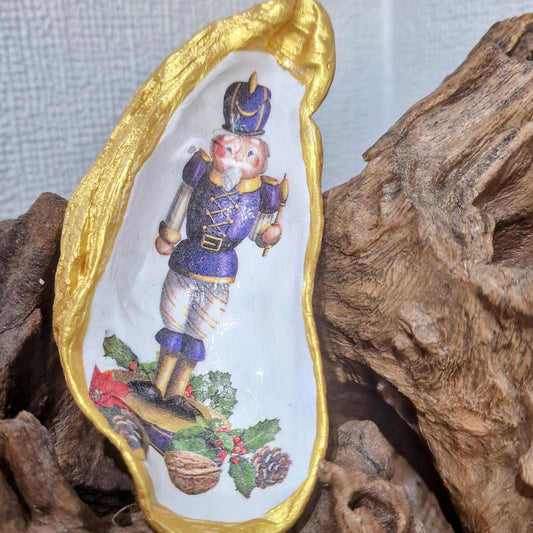Christmas Ornaments Blue Nutcracker Man Oyster Shell Trinket Dish