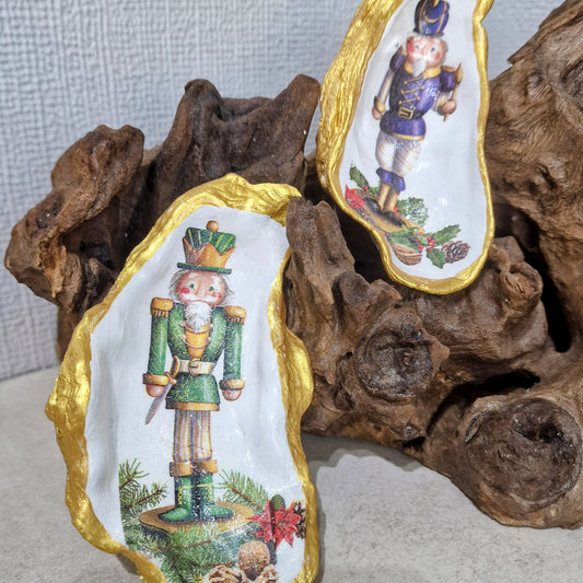 Christmas Ornaments 5 x Nutcracker Men Oyster Shell Decoration Ribbon