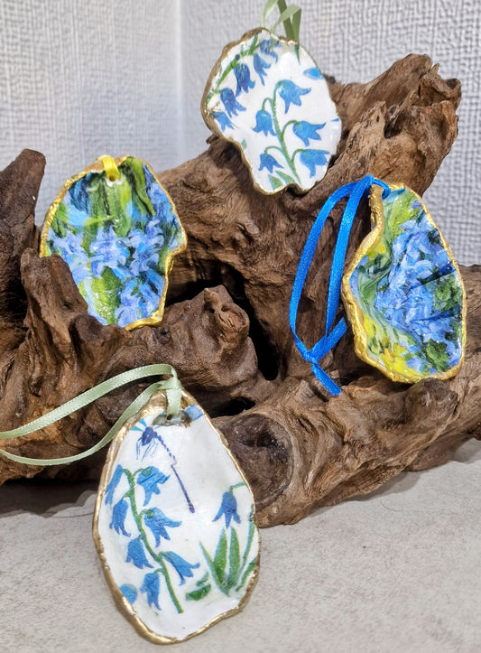 Christmas Ornaments 4 x Bluebells Shell Decoration Ribbon