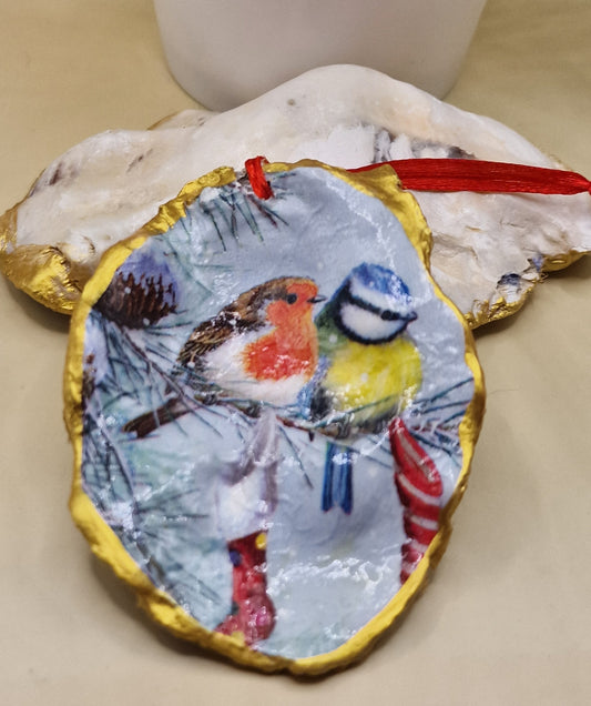 NEW Christmas Ornament Robin Blue Tit Stocking Oyster Shell