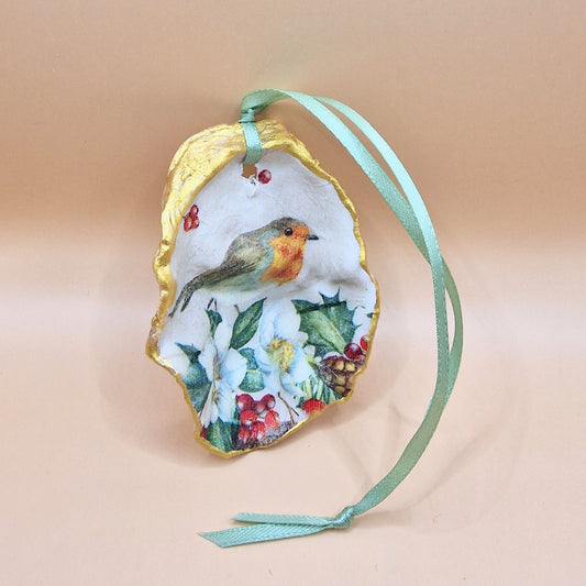 Christmas Ornament Robin Redbreast Oyster Shell Decoration