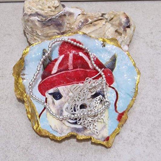 Christmas Llama Alpaca Oyster Shell Trinket Dish