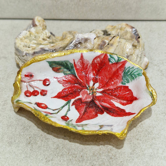 Christmas Poinsettia Red Flower Oyster Shell Decorative Trinket Dish