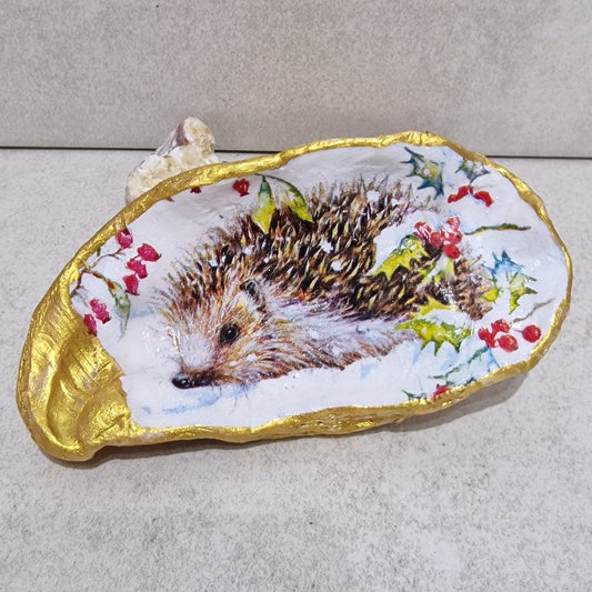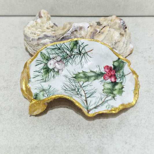 Christmas Holly Berry Oyster Shell Decorative Trinket Dish 8cm