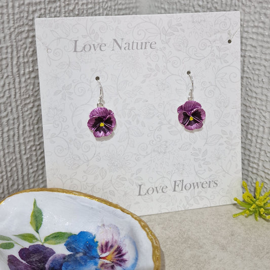 Pretty Lilac Pansy Flower Fashion Earrings Jewellery Pierced Mothers Day Gift