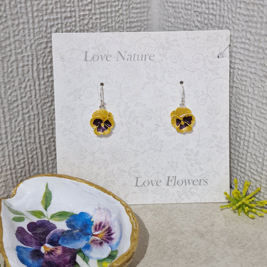 Pretty Yellow Pansy Flower Fashion Earrings Jewellery Pierced Mothers Day Gift