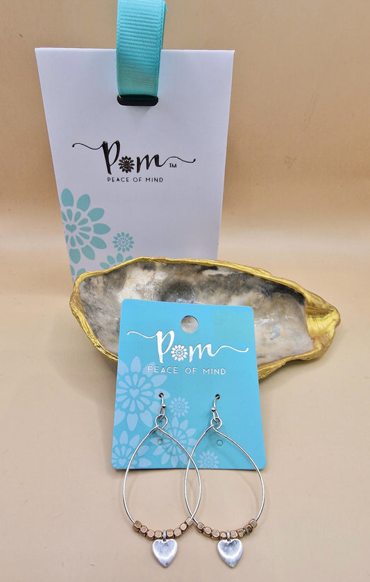 POM Silver Gold Heart Charm Drop Earrings Pierced Hoops