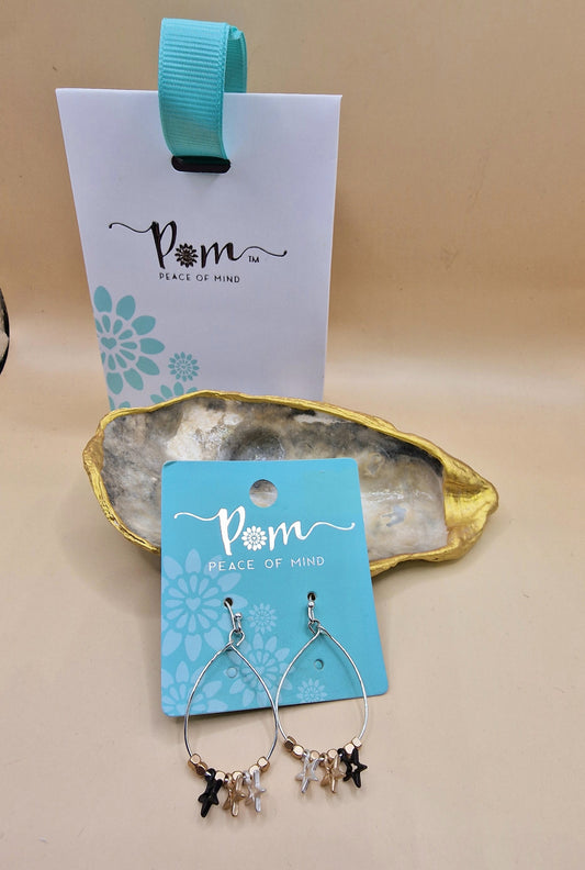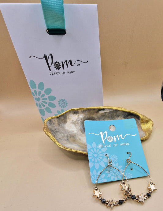 POM Silver Gold Black Star Charm Drop Earrings Pierced Hoops