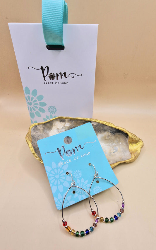 POM Silver Coloured Bead Drop Earrings Pierced Hoops