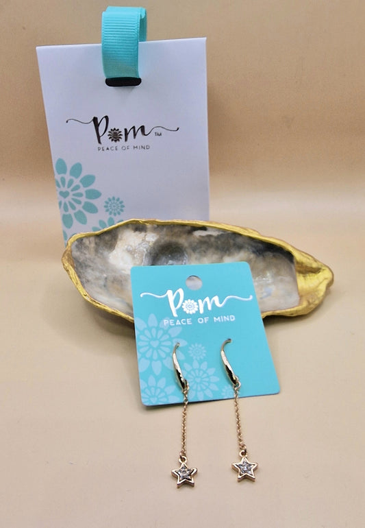 POM Gold Star Drop Crystal Earrings Pierced Charm Stunning