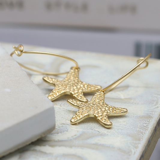 Beautiful Textured Gold Starfish Hoop Earrings by POM