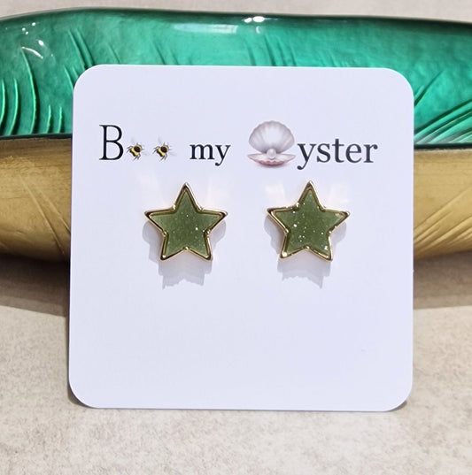 Olive Green Druzy Star Stud Pierced Fashion Earrings