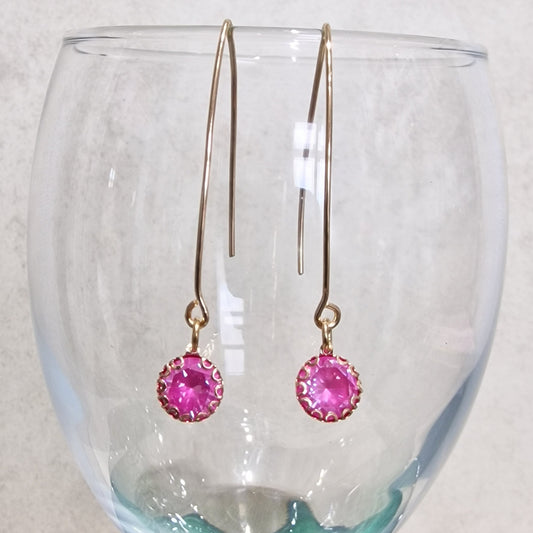 Fuchsia Crystal Long Pierced Drop Fashion Earrings