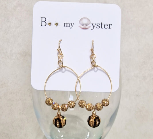 Leopard Print Crystal Ball Pierced Hoop Gold Fashion Earrings