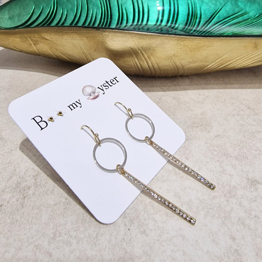 Gold Clear Crystal Bar Pierced Fashion Earrings