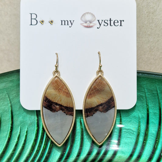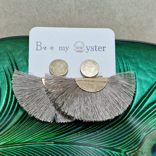 Stylish Taupe Silk Fan Pierced Fashion Earrings