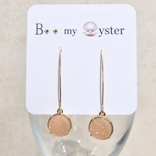 Pale Pink Druzy Long Pierced Fashion Earrings