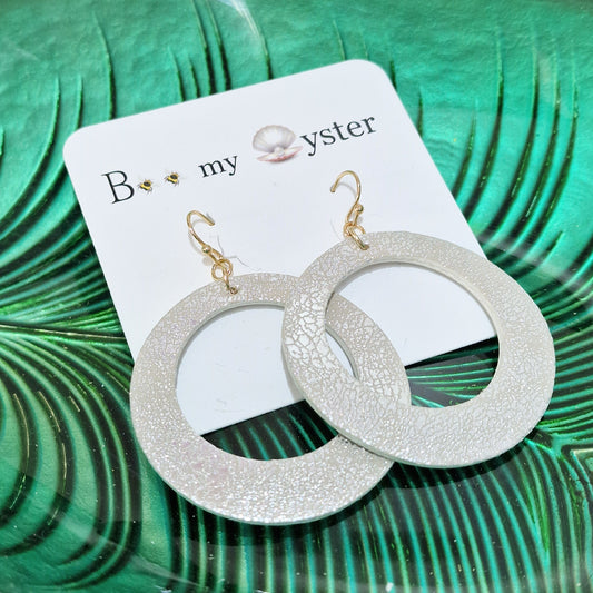 Silver Metallic Fabric Pierced Drop Hoop Fashion Earrings
