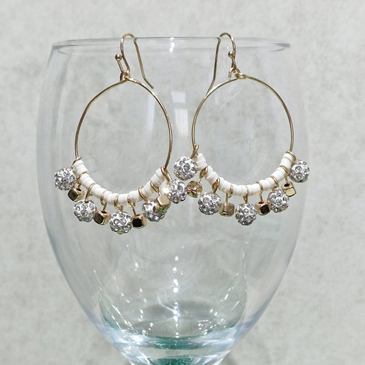 White Clear Crystal Ball Beaded Pierced Hoop Fashion Earrings