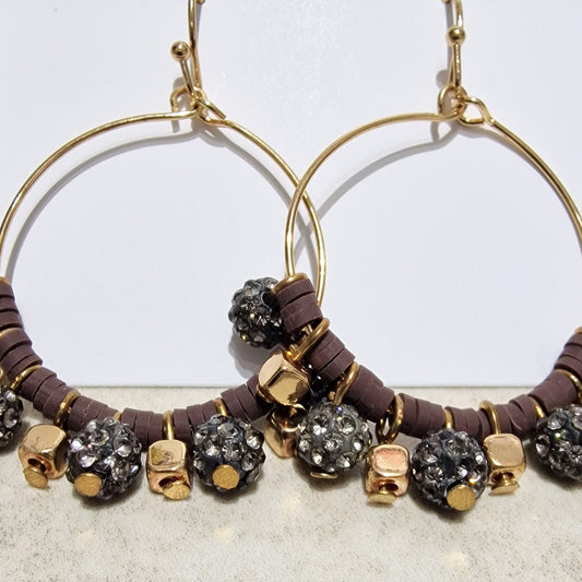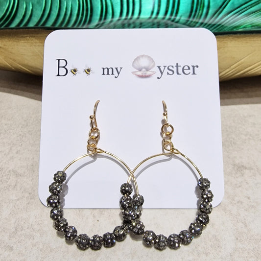 Black Diamond Crystal Ball Beaded Pierced Hoop Fashion Earrings