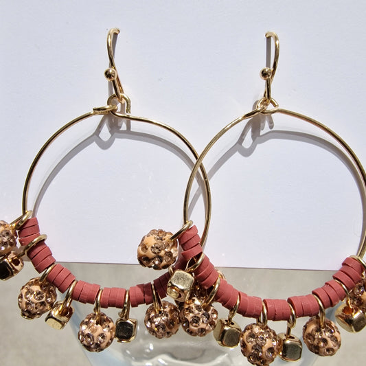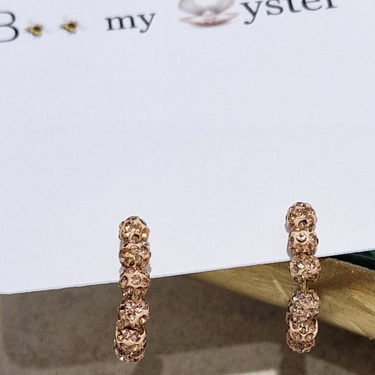 Rose Gold Crystal Ball Beaded Pierced Hoop Fashion Earrings