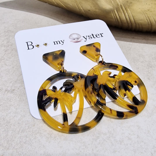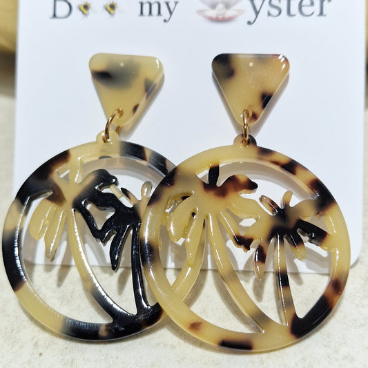 Tortoise Shell Beige Acrylic Palm Tree Pierced Drop Fashion Earrings