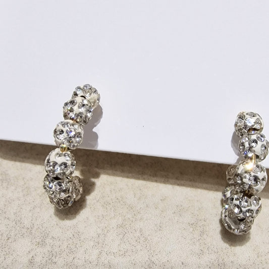 White Clear Crystal Ball Pierced Hoop Fashion Earrings